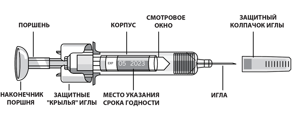 Не снимайте защитный колпачок иглы с предварительно заполненного шприца до момента введения препарата.