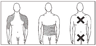 Пациент самостоятельно наносит гель на чистую, сухую, неповрежденную кожу плеч, предплечий и/или живота.
