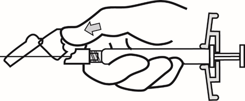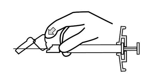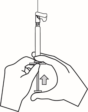6. Направьте шприц иглой вверх и выдавите из шприца воздух, слегка надавив на поршень.