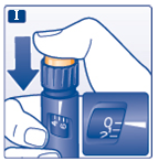 Удерживая шприц-ручку иглой вверх, нажмите пусковую кнопку до упора. Селектор дозировки возвратится к нулю.