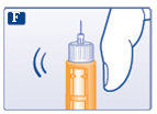 Держите Вашу шприц-ручку ФлексПен® иглой вверх, несколько раз слегка постучите по картриджу кончиком пальца, чтобы пузырьки воздуха переместились в верхнюю часть картриджа.