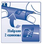 Наберите 2 единицы препарата поворотом селектора дозировки.
